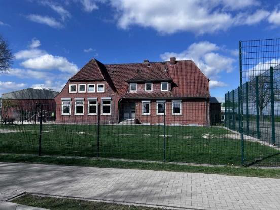 Fußballtore und Outdoor-Tischtennisplatte auf dem Gelände der Grundschule Ströhen