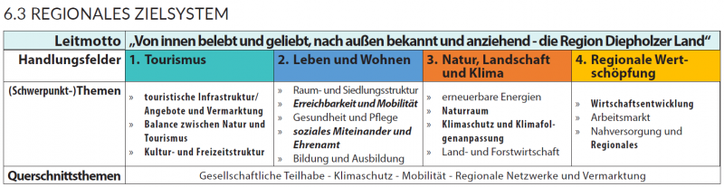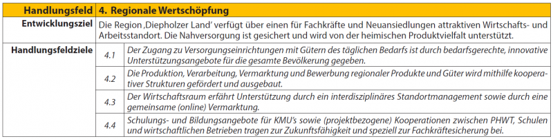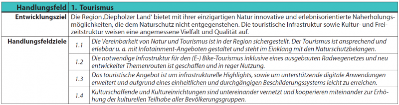 Die Entwicklungsstrategie stellt den inhaltlichen Kern des Entwicklungskonzeptes dar und umfasst ein regionales Leitbild, übergeordnete Entwicklungsziele sowie Handlungsfeldziele in vier ausgewählten Handlungsfeldern.