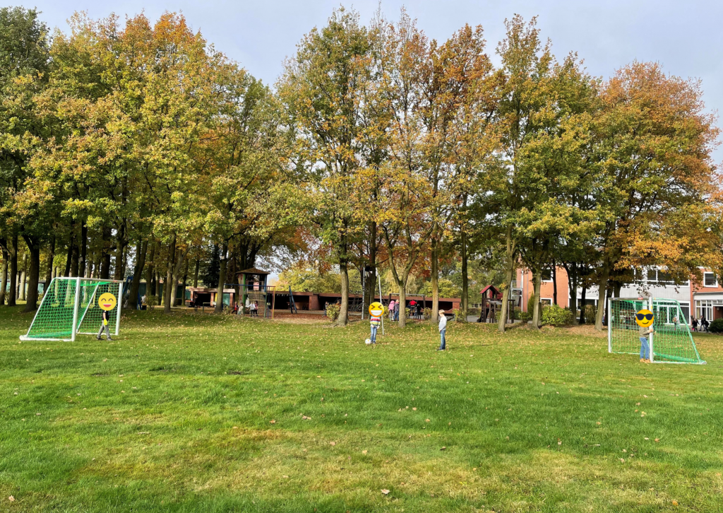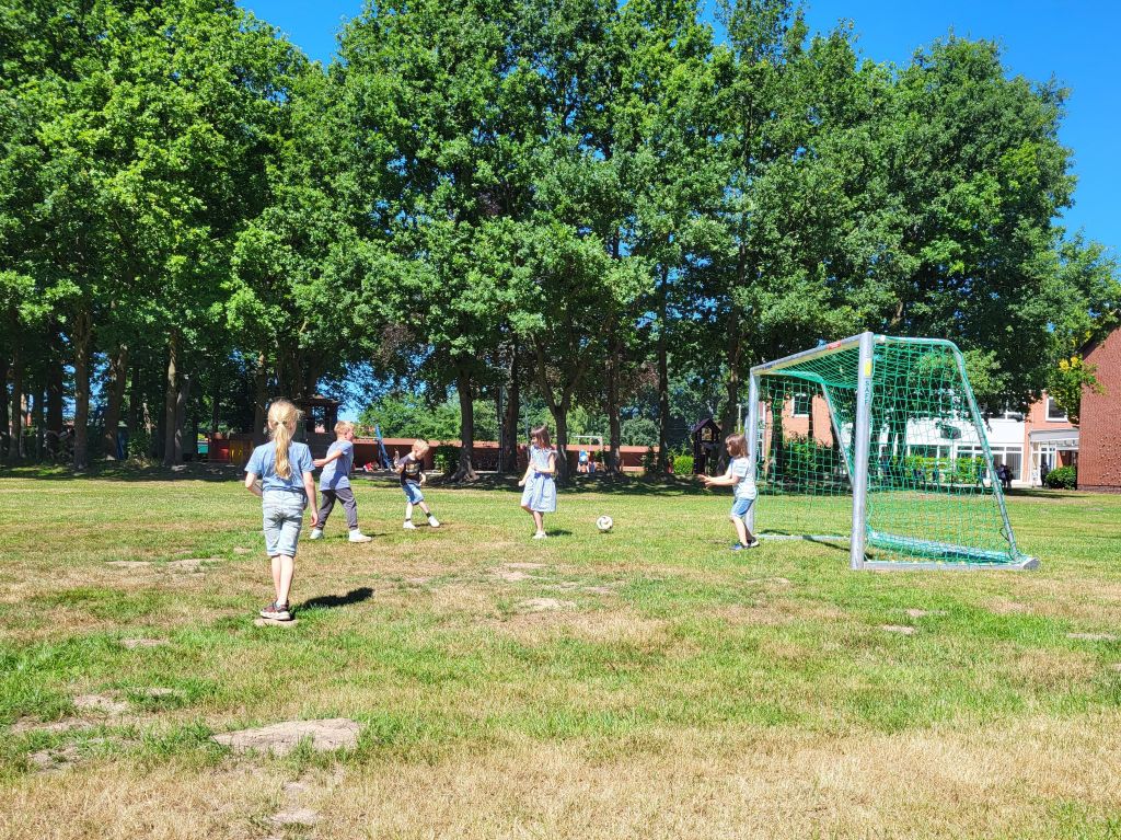Neben dem Spielplatz befindet sich eine Rasenfläche, die die Kinder während der Schulzeiten zum Fußballspielen nutzen. Die Fläche hat keine Tore und lädt aufgrund ihrer Beschaffenheit nicht zum Spielen ein.