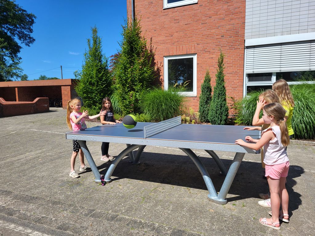 Diese können von den Schülerinnen und Schülern während der Pausen und in der Ganztagsbetreuung genutzt werden. Danach stehen die Geräte, sowie ein toller Spielplatz und Sitzgelegenheiten der Öffentlichkeit zur Verfügung. Kinder und Jugendliche können sich am Nachmittag zum „Bolzen“ oder Tischtennis spielen auf dem Schulgelände treffen. Auch örtliche Vereine und Gruppen können den Außenbereich jetzt noch besser für ihre Aktivitäten nutzen.