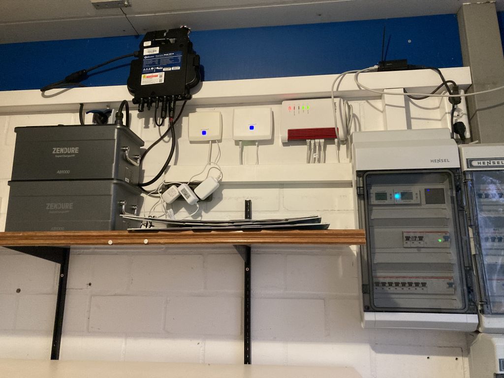 Bisher wurde im Winter viel Gas verbraucht, um Frostschäden zu vermeiden, obwohl das Gebäude nicht genutzt wurde. Mittlerweile übernimmt eine Wärmepumpe die Warmwasserversorgung und die Wärmeversorgung erfolgt über Infrarot-Heizplatten, die ihre Energie über ein Balkonkraftwerk beziehen.