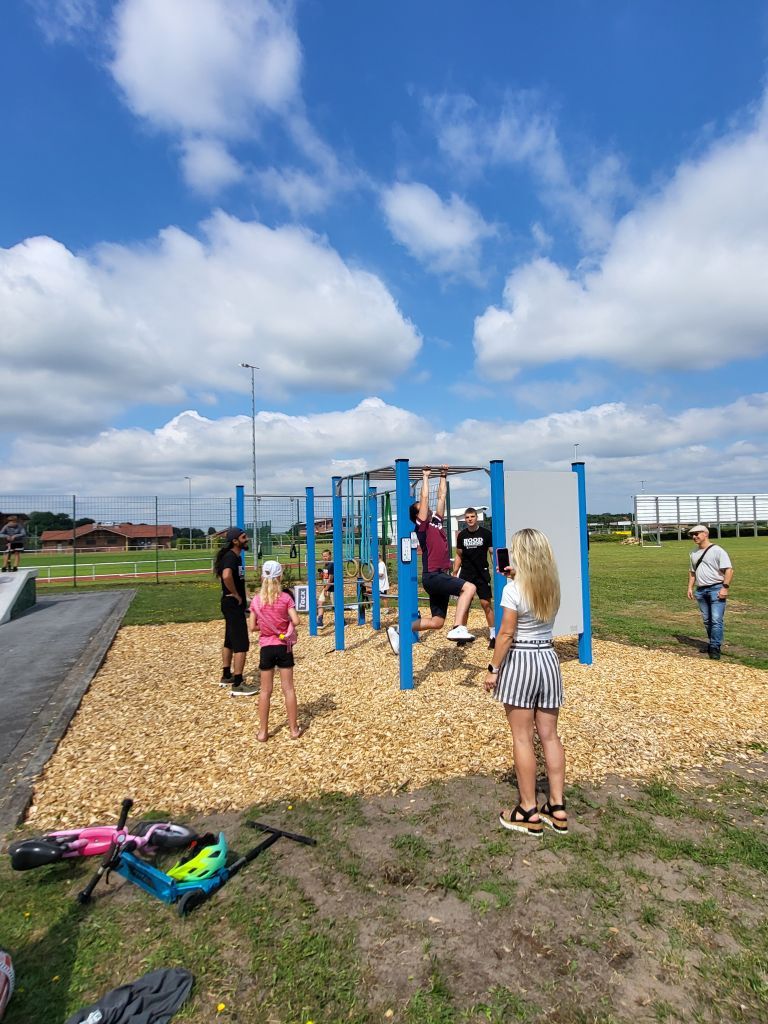 Neben der befetigten Fläche befindet sich ein Freiluft-Fitnessstudio, eine sogenannte Calisthenics-Anlage.