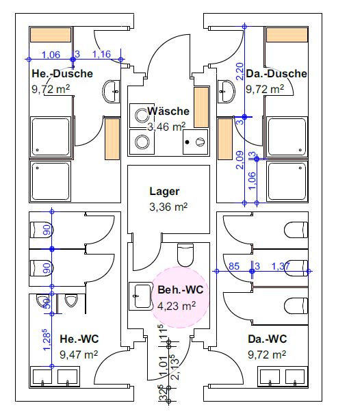 Um der wachsenden Anfrage nach sanitären Anlagen für die Wohnmobilgäste gerecht zu werden, möchte der Tierpark im Bereich des Parkplatzes eine kombinierte Toiletten-, und Duschanlage errichten, die gleichzeitig einen Wäscheraum für die Bewohner der Ferienhäuser beinhaltet, damit diese bei einem längeren Aufenthalt ihre eigene Wäsche waschen können.