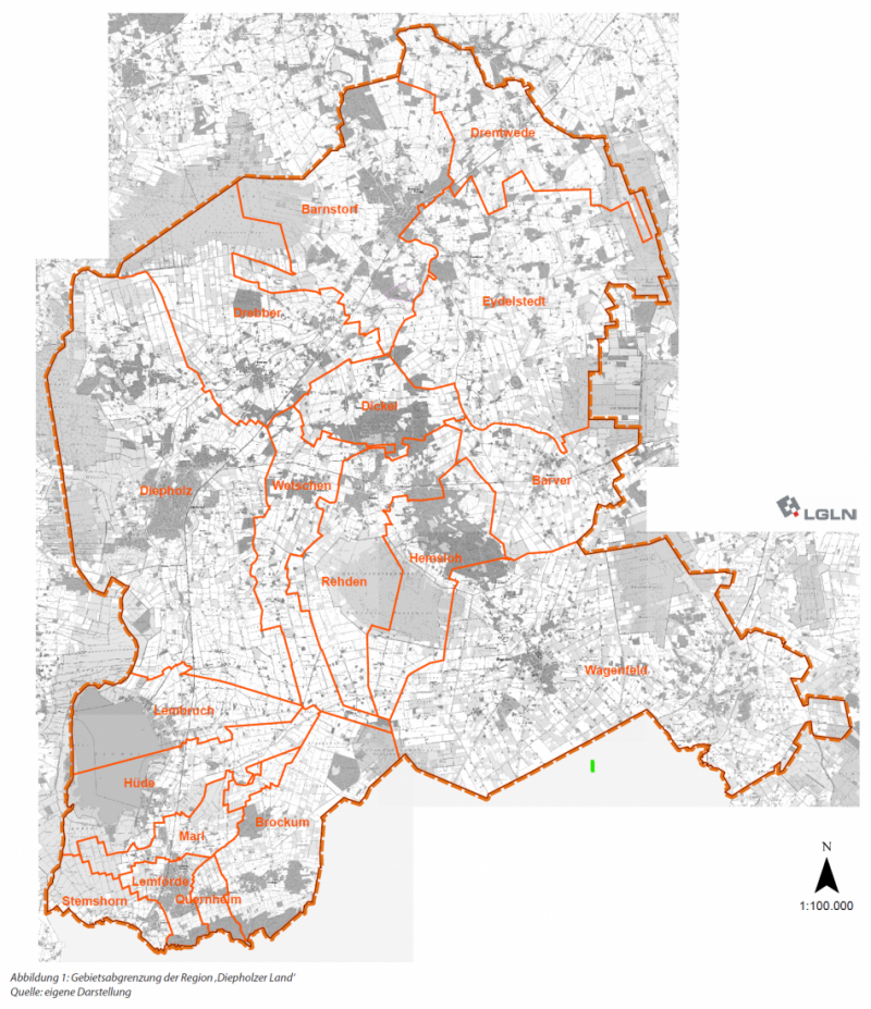 Insgesamt leben 51.765 Menschen auf einer Fläche von etwa 666 km² in der Region „Diepholzer Land“, die im Südwesten des Landkreises Diepholz liegt.
